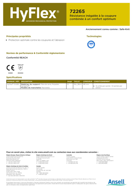MANCHETTE ANTI COUPURES ANSELL HYFLEX 72265